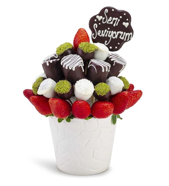 Seni Seviyorum Mesajlı Lezzetli Çilek Kek Buketi