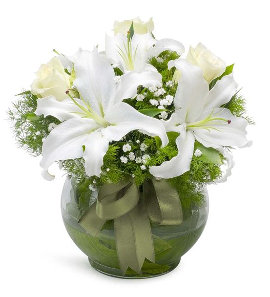 Cam Fanusta Mis Kokulu Lilyum ve Güller