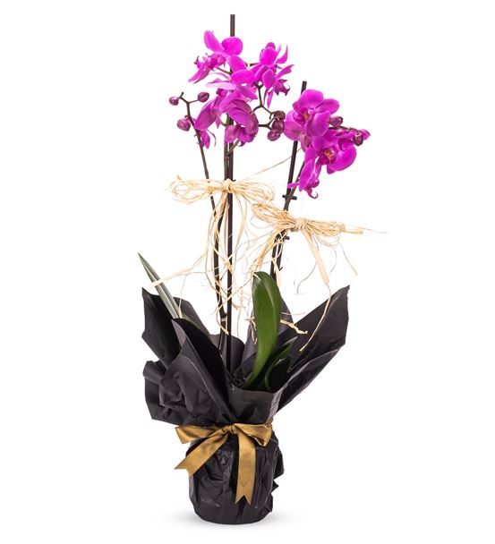 Siyah Dekoratif Kağıtta 2 Dal Mor Orkide Tasarım
