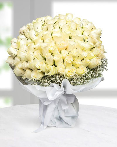 Ruh Eşim 100 Beyaz Gül Buketi