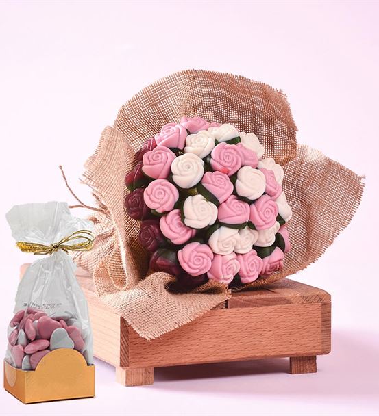 Yenilebilir Gül Desenli Buket Ve Çikolata Hediyeli